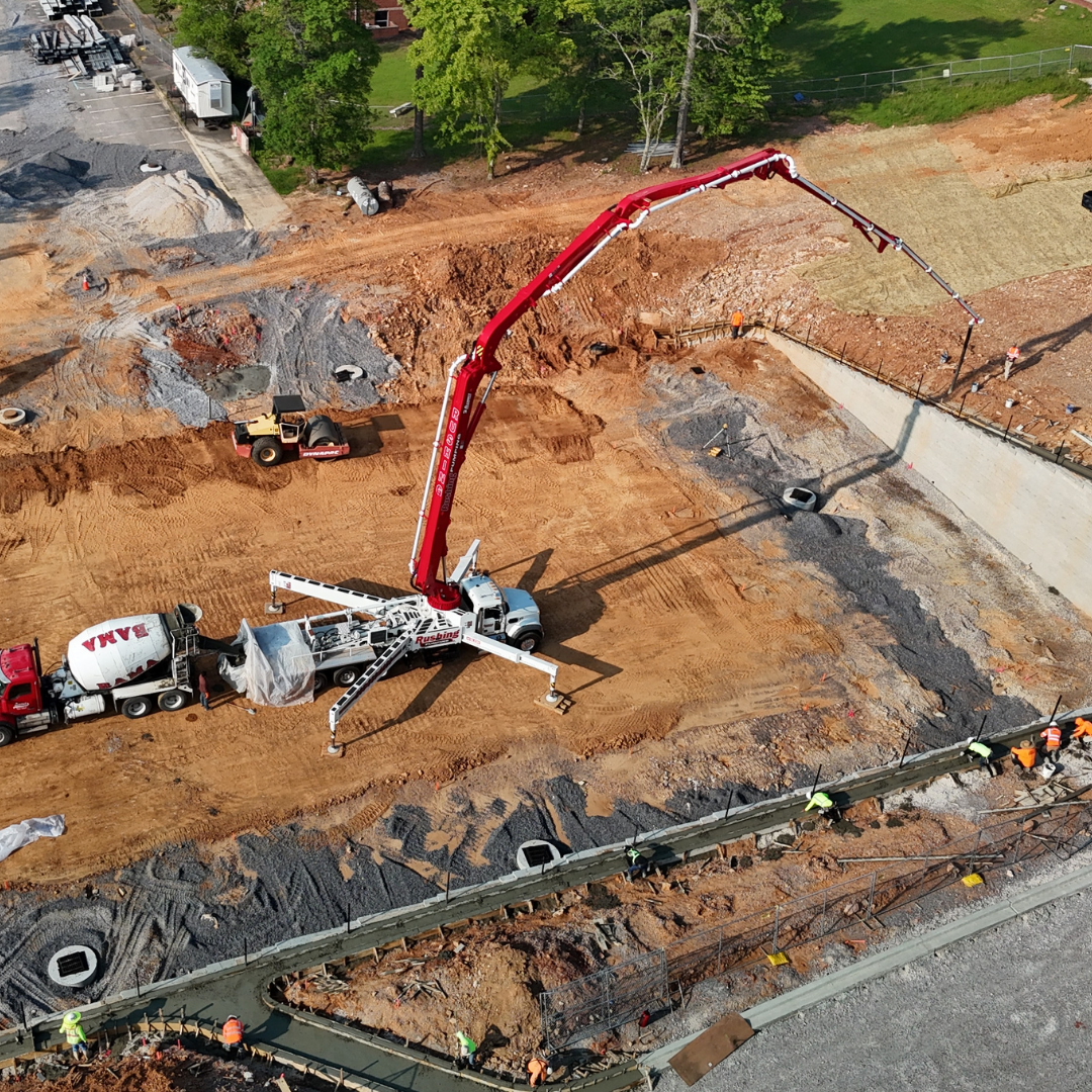 Large-scale vertical concrete construction requires the ability to deliver material quickly to upper floors. A standard concrete line pump often lacks the vertical reach and volume capacity needed for multi-story pours. We utilize boom pumps to navigate height obstacles, ensuring that the concrete pumping process remains continuous and efficient even at significant elevations above the street.