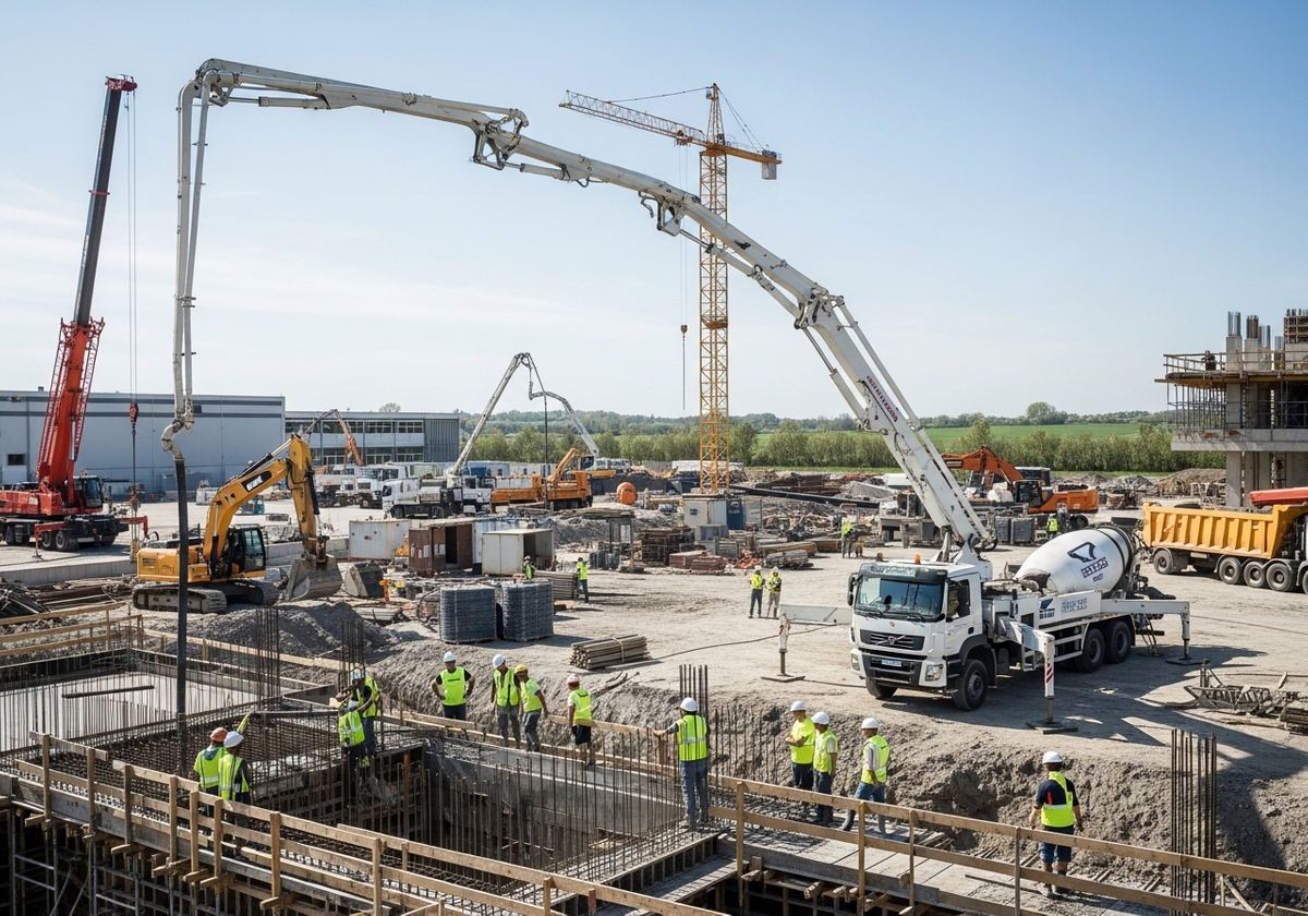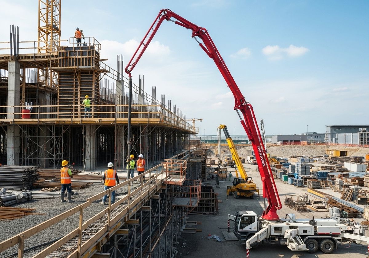 A boom pump is a type of concrete pump that uses a remote-controlled articulating arm (the “boom”) to place concrete accurately and efficiently. These pumps are mounted on trucks, making them highly mobile and capable of reaching difficult-to-access areas on construction sites. Boom pumps are essential for projects that require high-volume concrete placement or have challenging logistical constraints.